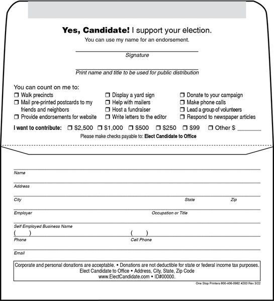 6 1 2 Political Campaign Donation Envelope One Stop Printers Direct Mail Service